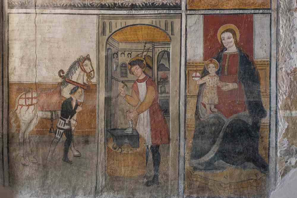 A manchina es presents un triptic abo lo miracol de Sant’Elìs qu’estacha mai la piòta a un caval. Al centre lo Sant, vivut ental VII secle, qu’en l’iconografia locala es rapresentat coma maniscalc, ten en man la piòta talhaa d’al bestia, pintaa a manchina, dapè a un cavalier. A drecha es pas rapresentaa la part finala del miracol, mas una Vierge en tròn abo lo Bambin que ten la Tèrra. L’inscripcion gòtica sobra las figuras repòrta lhi noms di comitents de l’òbra, frescaa vers lo 1510 da un autor anònim.
