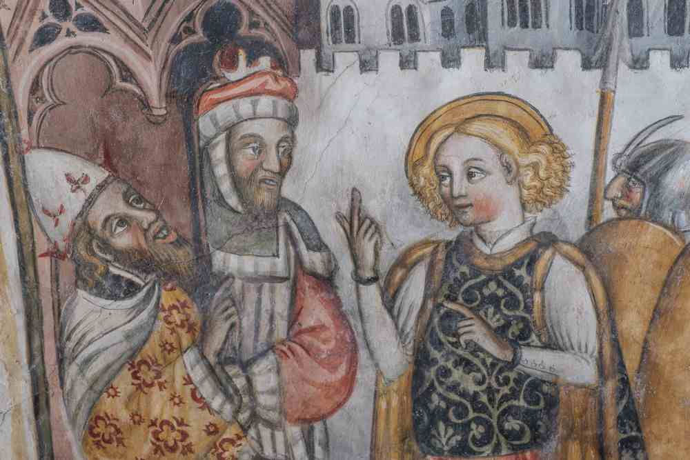 A manchina, d’un autre autor del mesme temp de Pèire da Saluces, es rafigurat Sant Jòrç que maça lo dragon per liberar la prencessa Trebisonda.