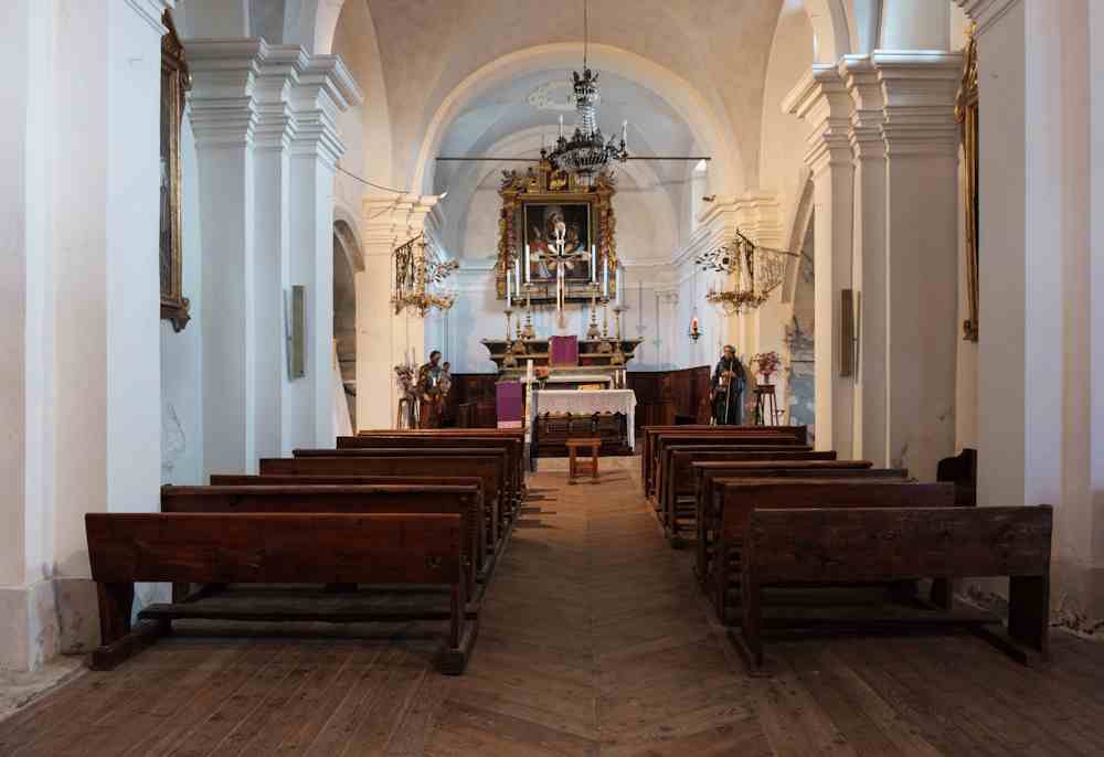 Dins la chapèla de manchina, dediaa a la Madòna del Rosari, es presenta una pintura a fresc del Cinq Cents del soldat Sant Julian.