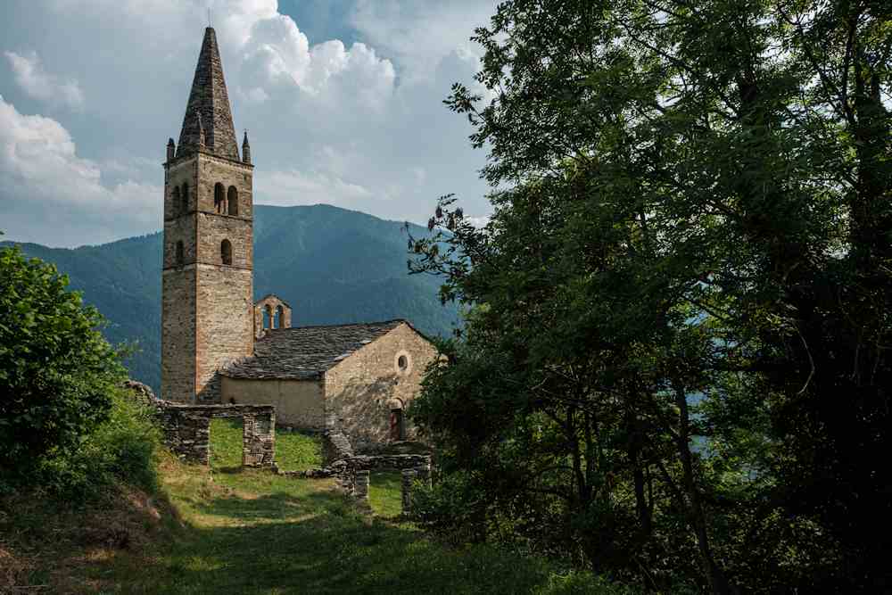 La Glèisa de Sant Pèire es isolaa sus lo chamin que pòrta a Elva: bastia dins lo XII sècle, de fòra es ben simpla, embè façada a dobla penta. Singolara es la presènça de dui cloquiers, un romanic a vela e un gòtic embè auta poncha octagonala ariondaa da quatre pichòts trumèls.