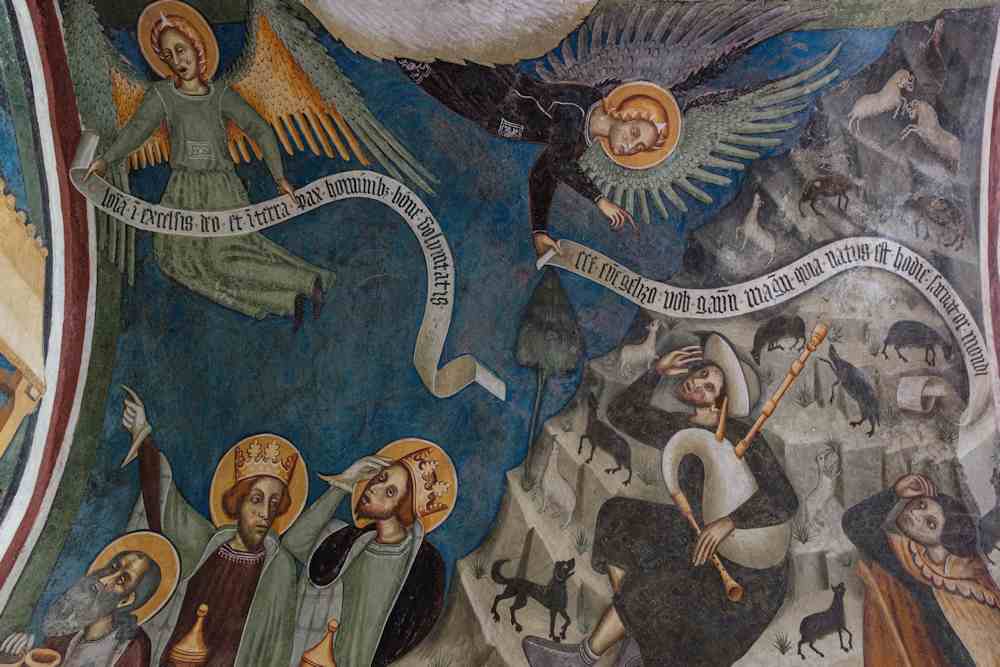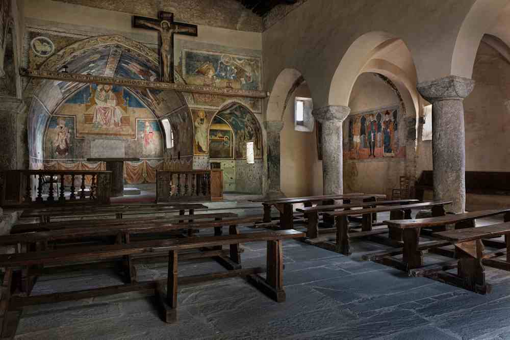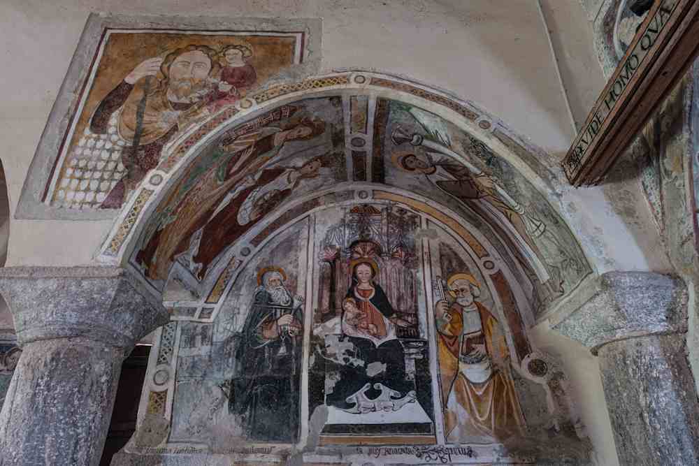Es l’àbsida pichòta a gardar lhi tresòrs mai grands, embè un tersen magistre anònim, benlèu lombard, autor al principi del XV sècle de Naissença, Anonciacion ai pastres, Adoracion di Tres Reis e Dormitio Virginis, entè Pèire es chamat a veire l’Asompcion de la Vierge. Inspiraas a lhi Evangelis Apòcrifs, rapresenton en manièra delicaa la naissença de Criste abo de particulars originals. Benlèu lo mesme autor realiza la Maria Magdalena pintaa s’la pilha entre absida granda e pichòta. Un quarten pintre, menc rafinat, es autor al principi del Cinq Cents del Sant Pèire e del triptic embè Sant Bastian, Sant Ròc e Sant Fabian Papa dins la navada drecha.