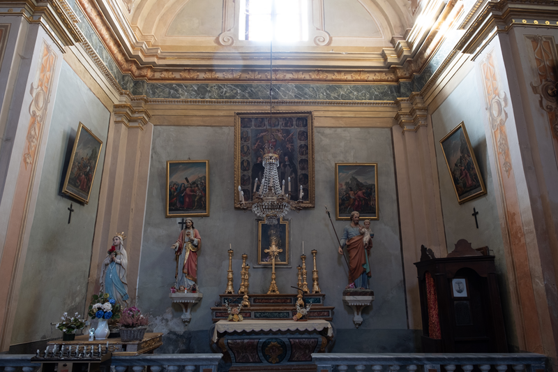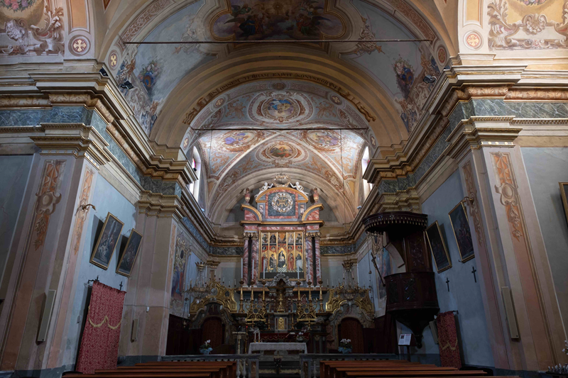 Lo ver tresòr de la glèisa, eira a Slauces, era un preciós poliptic realizat en lo 1496 dal flamand Hans Clemer: comandaa en lo 1496 da Giovanni Forneris del Piasc, prevòst del temps, l’òbra en cinq taulas es plaçaa sal fons de l’absida.