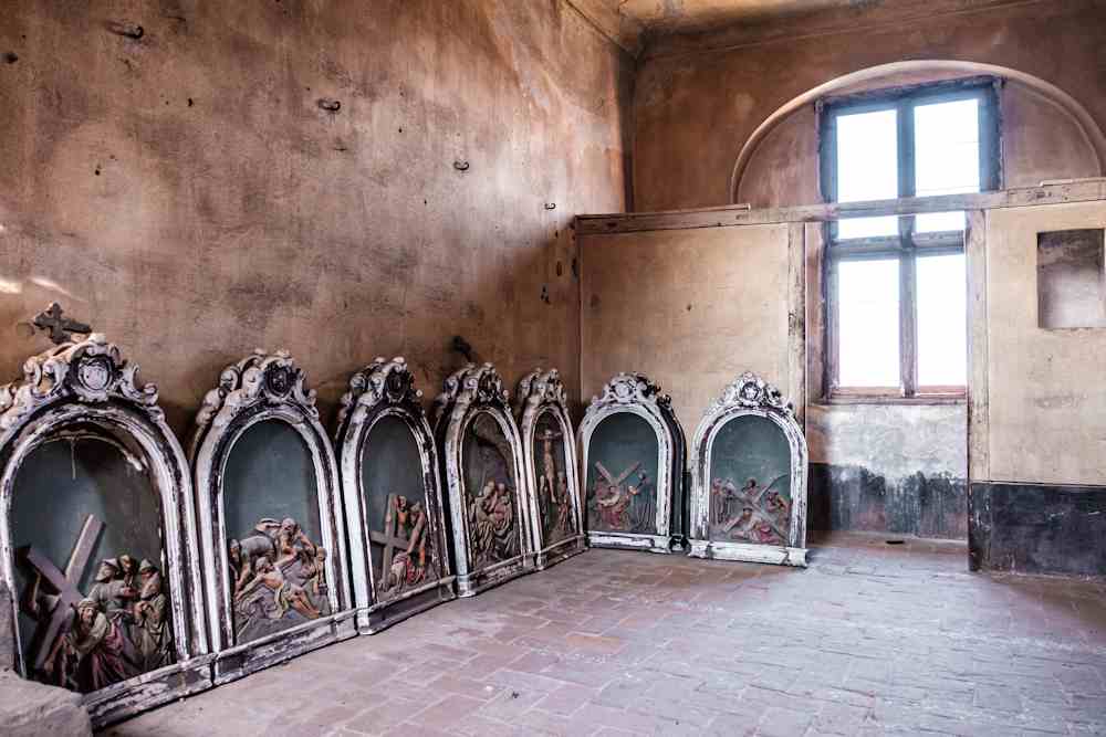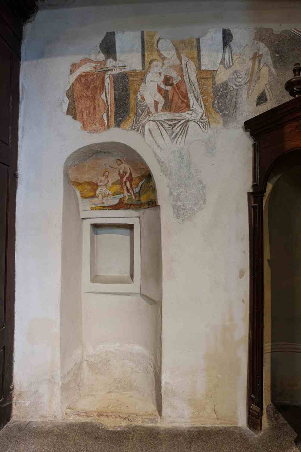 L’edificacion d’la parroquiala bolversa lo complèx arquitectònic originari; totun, gracias ai restaurs financiats da l’arditat de Don Alessandro Marino, darrièr vicari abo foncions de parco, mòrt ental 1999, encuei se son ben gardats e se pòlon visitar lo claustre porticat del Quatre Cents, abo arcadas augivalas e pilias octagonalas en terra cuecha, la maison d’l’evesco e la vielha vòuta del tard Cinq Cents, encuei salon polivalent. Al plan dessobre se pòlon visitar las severas celas des monias, abo sòls en terra cuecha e vòutas en bòsc, e mobilia del Set-Uech Cents.
