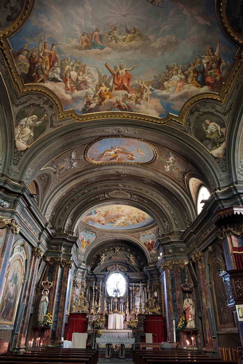 Drant del 1961 eron encara visibles de tonds embè busts des Sibilas, iconografia ben rara dins la provincia de Coni, companhaas da escrichas que portavon lo nom e lo vaticini de chasqued’una. Encuèi se pòl encara leser l’Adoracion di Tres Reis: dataa al 1425, per lhi critics l’autor seria lo mesme des pinturas dins la vòuta de la Parroquiala d’Elva en Val Maira. Autre artista, menc rafinat, realiza lo Massacre de lhi Innocents e lo Miracol del gran tirats da lhi Evangelis Apòcrifs.