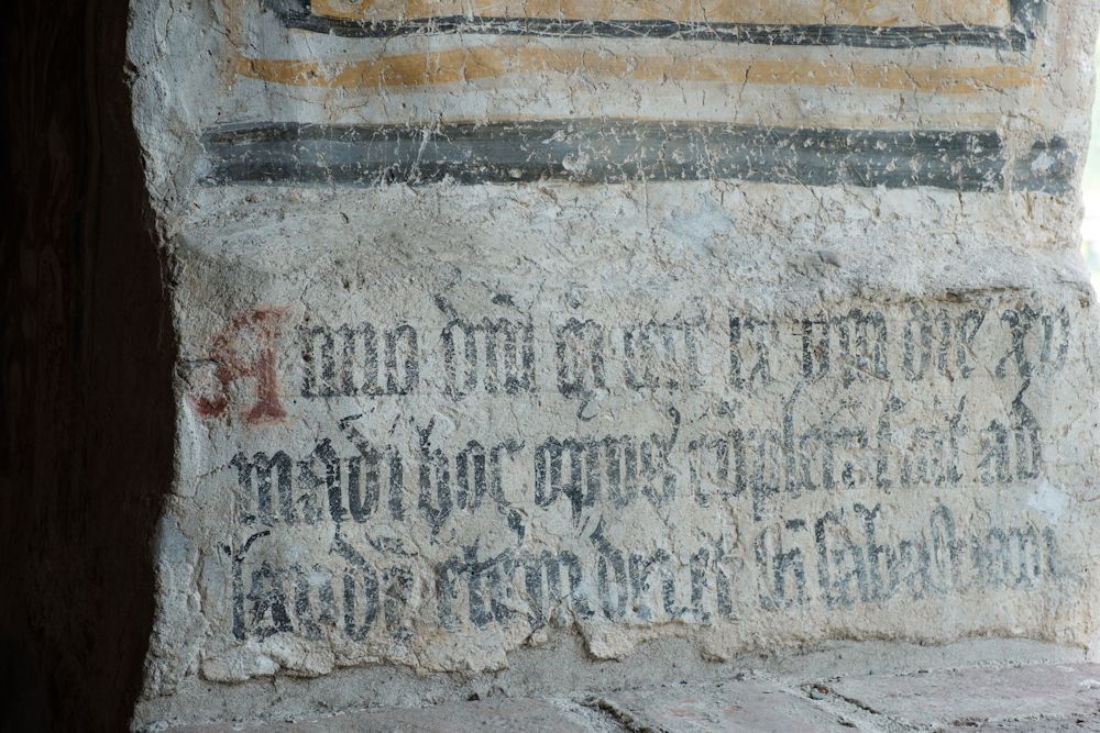 Dedins la chapèla ven tota decoraa ental 1468 da Pèire da Saluces, chamat da Giacomo e Gioffredo Saluzzo - Valgrana, feudataris del pòst en la seconda metat del Quatre Cents.